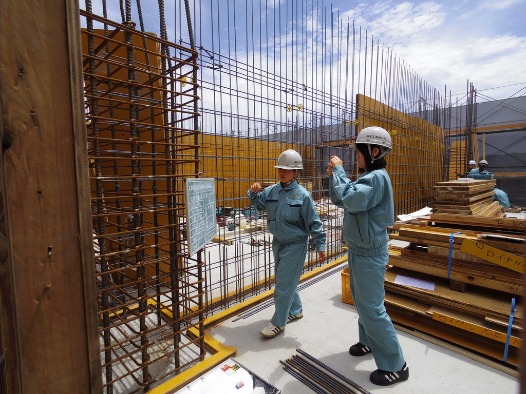 その後、岸之上工務店様が施工中のマンション現場に移り、黒板を用いた従来の工事写真撮影と、「SPIDER+」を用いたタブレット撮影を比較しながら施工管理業務の一端を体験していただきました。