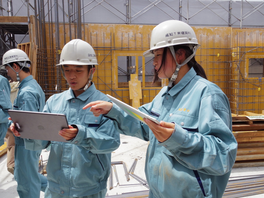 昔は黒板、今はタブレット端末… 建設現場で高校生が“DX施工管理”体験