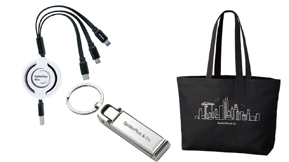 期間中、ブースご来訪の方にはスパイダープラスのオリジナルノベルティグッズを差し上げます。