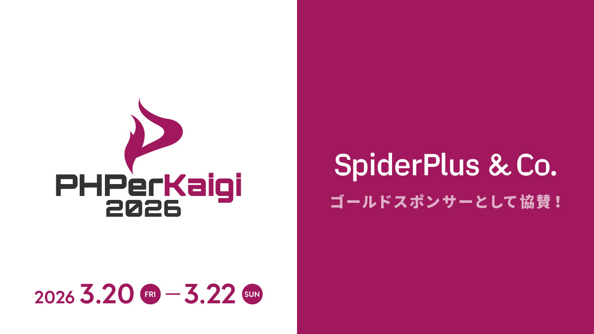 スパイダープラス、PHPerKaigi 2026 参加のお知らせ ゴールドスポンサーとして協賛、ブース出展も